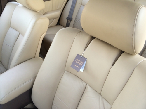 新車時のレザーシート装着車の助手席につけられているレザーシートタグ、品番がなく部品として