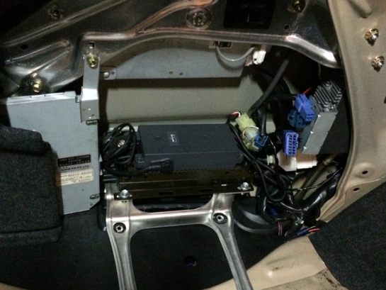 取り付けはリヤシート外して、アームレストを分解し純正ネジで固定して、車両ハーネスにカプラー