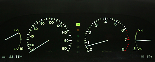 後期型から外気温表示とオド/トリップ表記がメーター内に移動、その他ウオーニングランプ類の