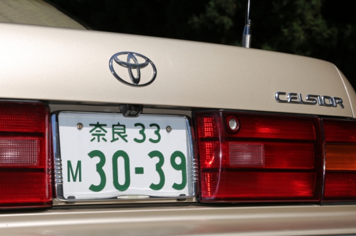 10系セルシオのデザインにぴったりのナンバーフレーム、50系センチュリーの中期あたりまで